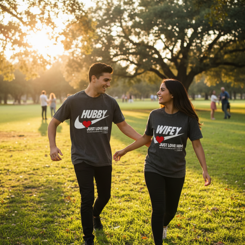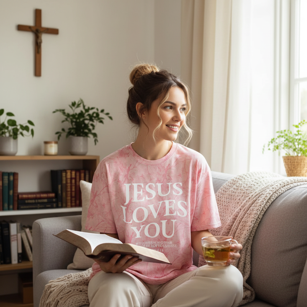 Just Love Him/Her Christian Couple Washed T‑Shirt for Valentine's Day 2026