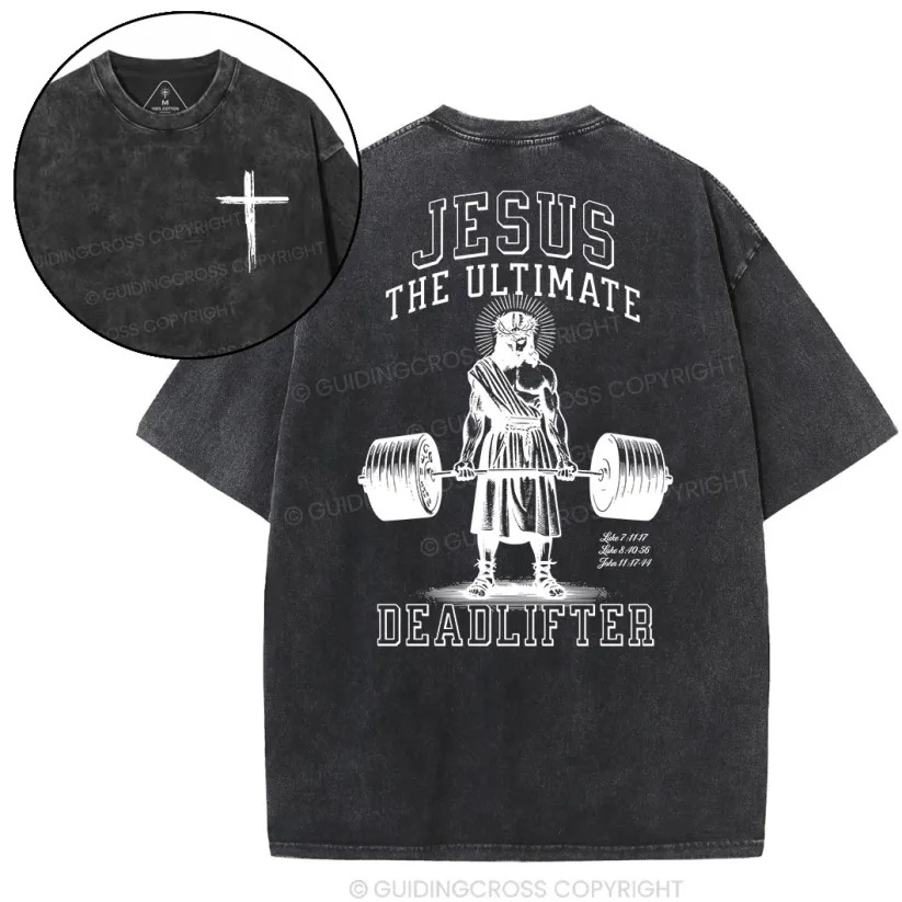 t GuidingCross, we’re passionate about creating clothing that reflects faith, strength, and individuality. Our designs are more than just apparel—they’re an expression of belief and a way to spark meaningful conversations. That’s why we’re thrilled to introduce the Jesus The Ultimate Deadlifter Washed T-Shirt, a bold and inspiring piece that’s perfect for summer 2025.