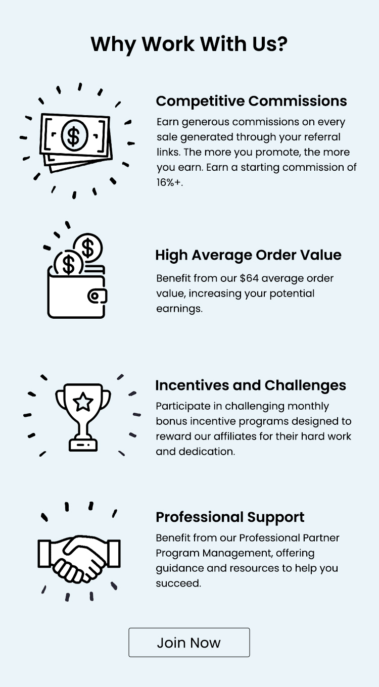 If you own an excellent site, it could be a coupon, cashback, content blog, social media account, or others; If you also have amazing promotion ways, join our affiliate program now!