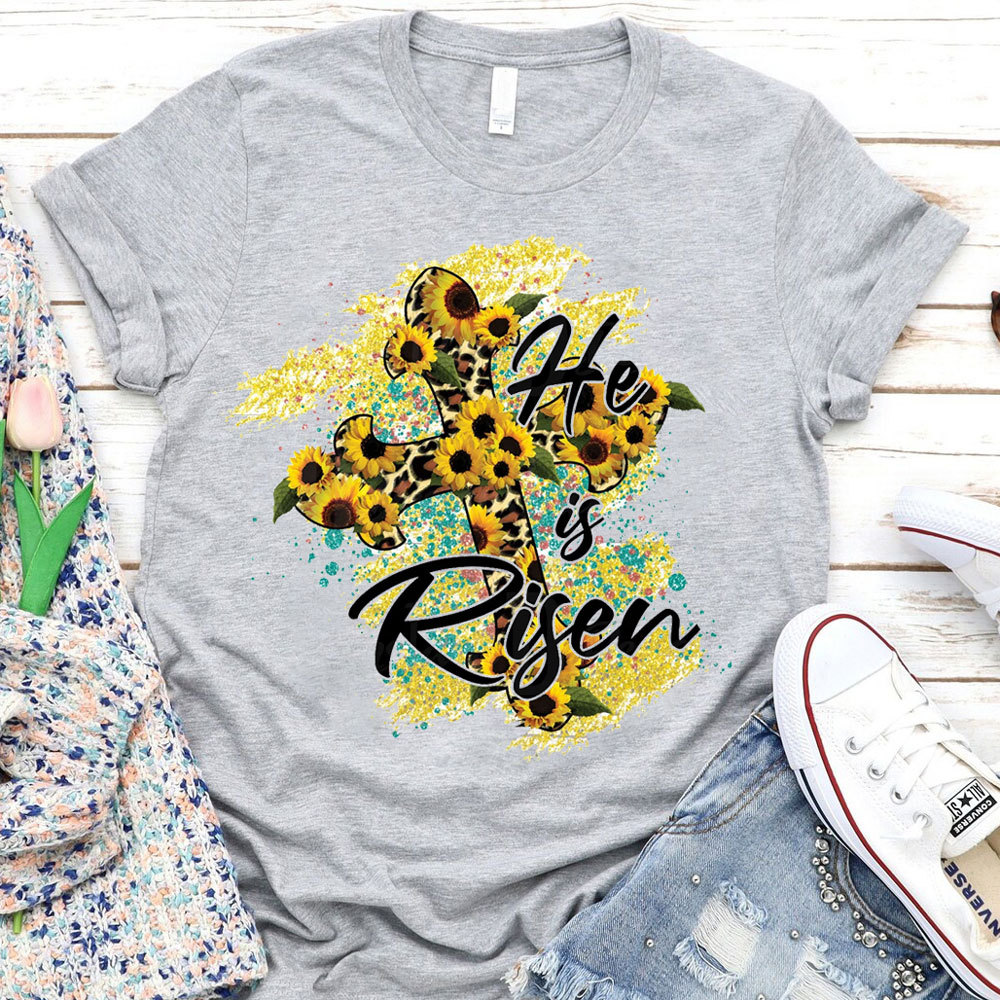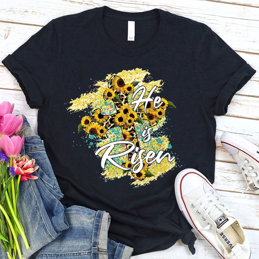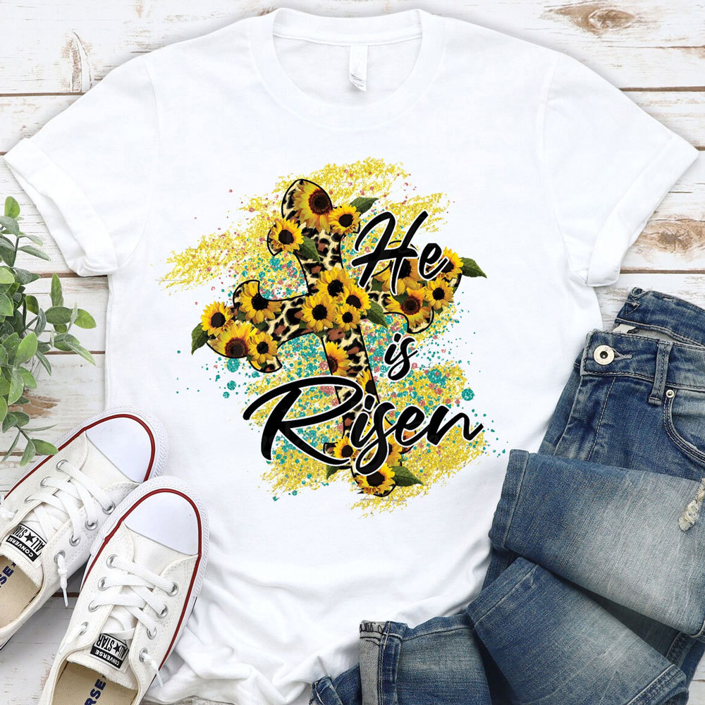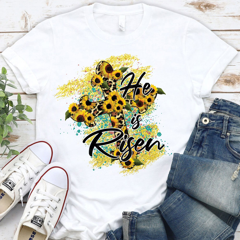 Easter Cross Leopard Sunflower He Is Risen Shirt