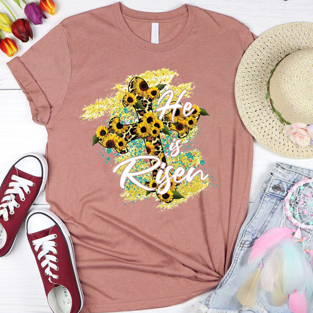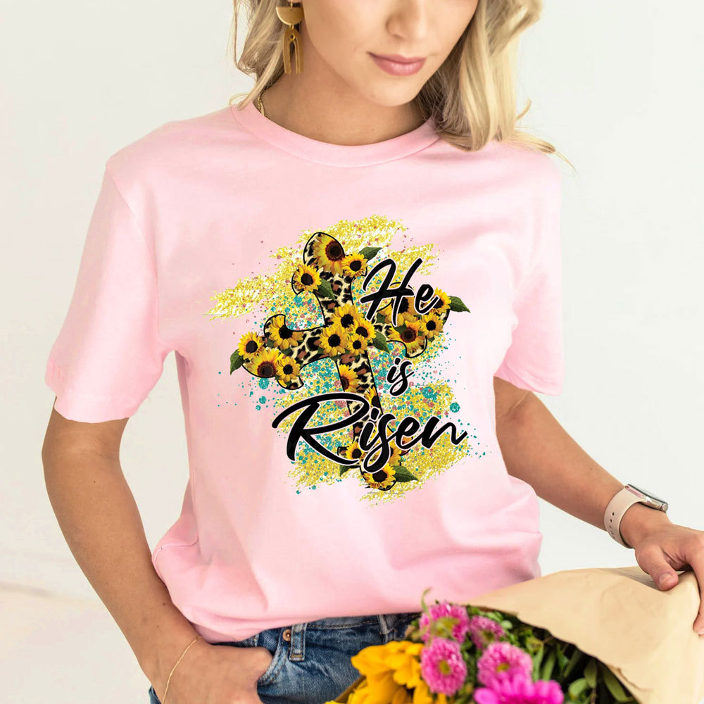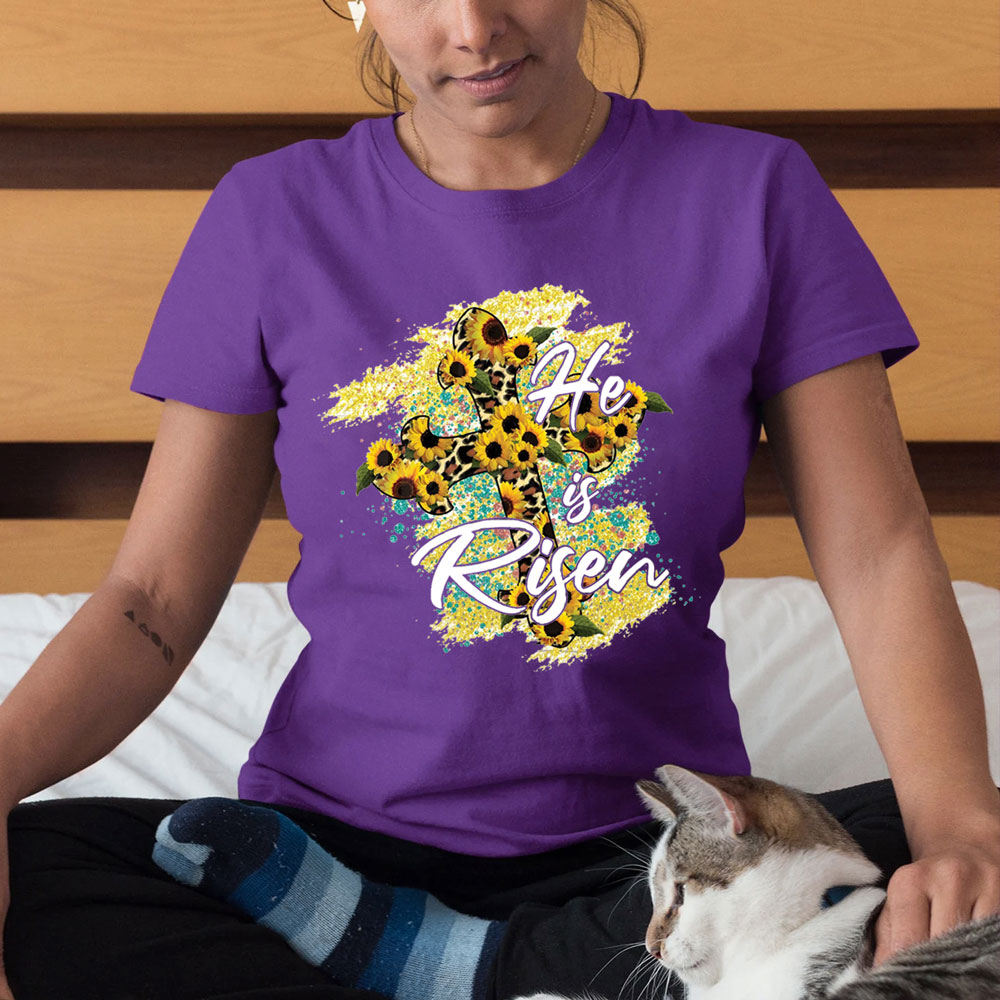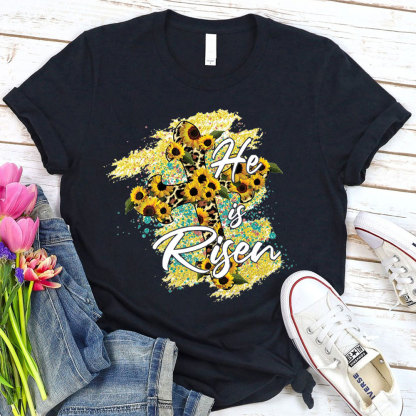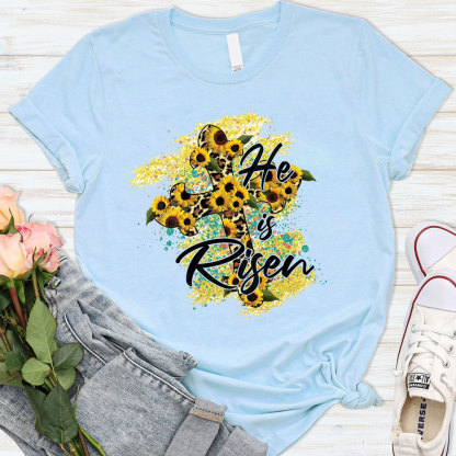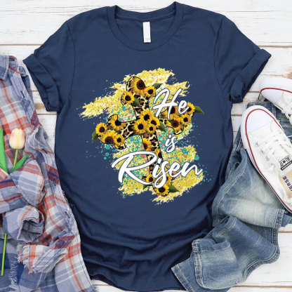 Easter Cross Leopard Sunflower He Is Risen Shirt