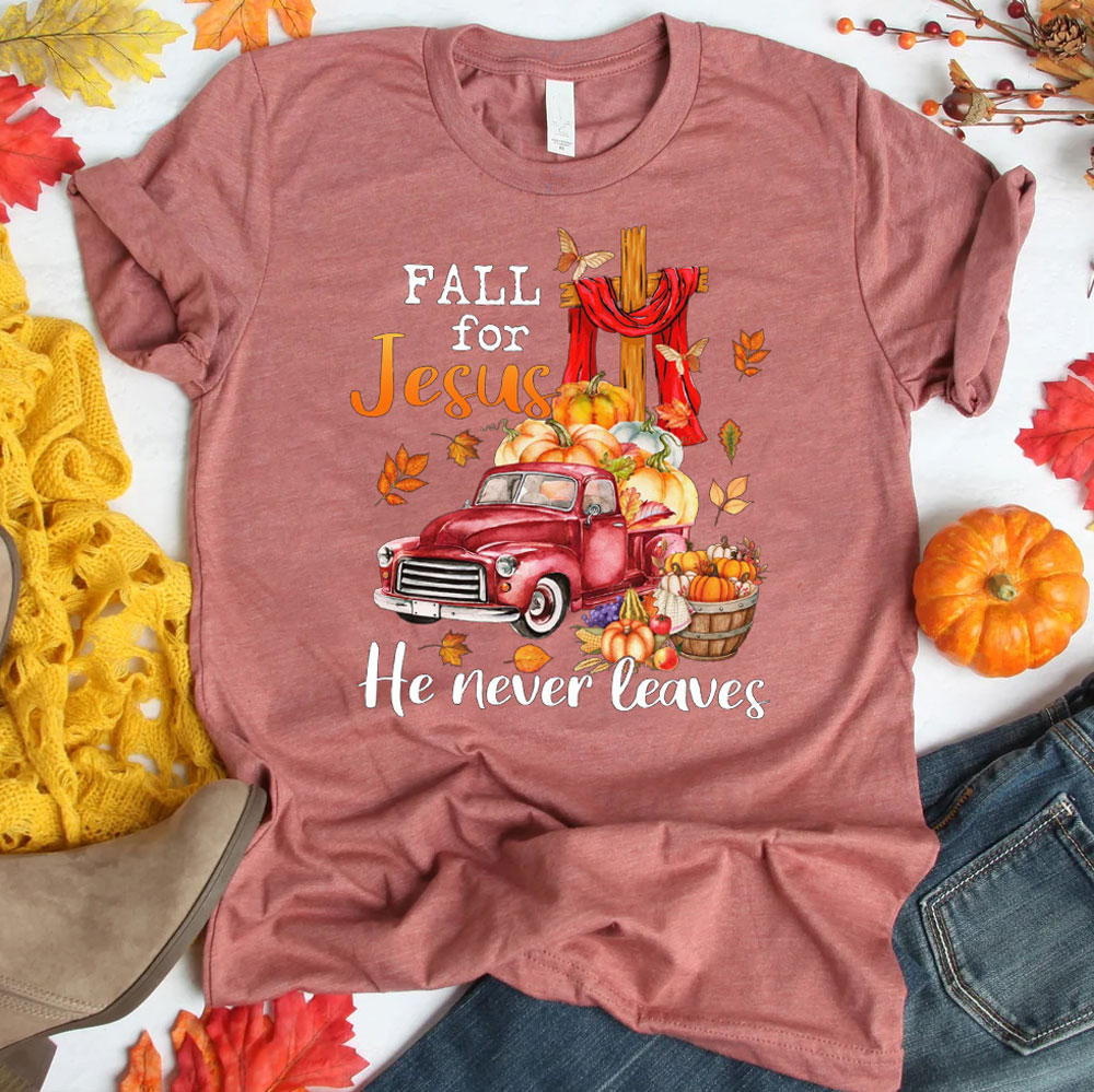 Fall For Jesus He Never Leaves Autumn T-Shirt