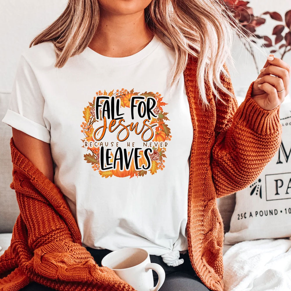 Fall for Jesus He Never Leaves Shirt Thanksgiving Gifts