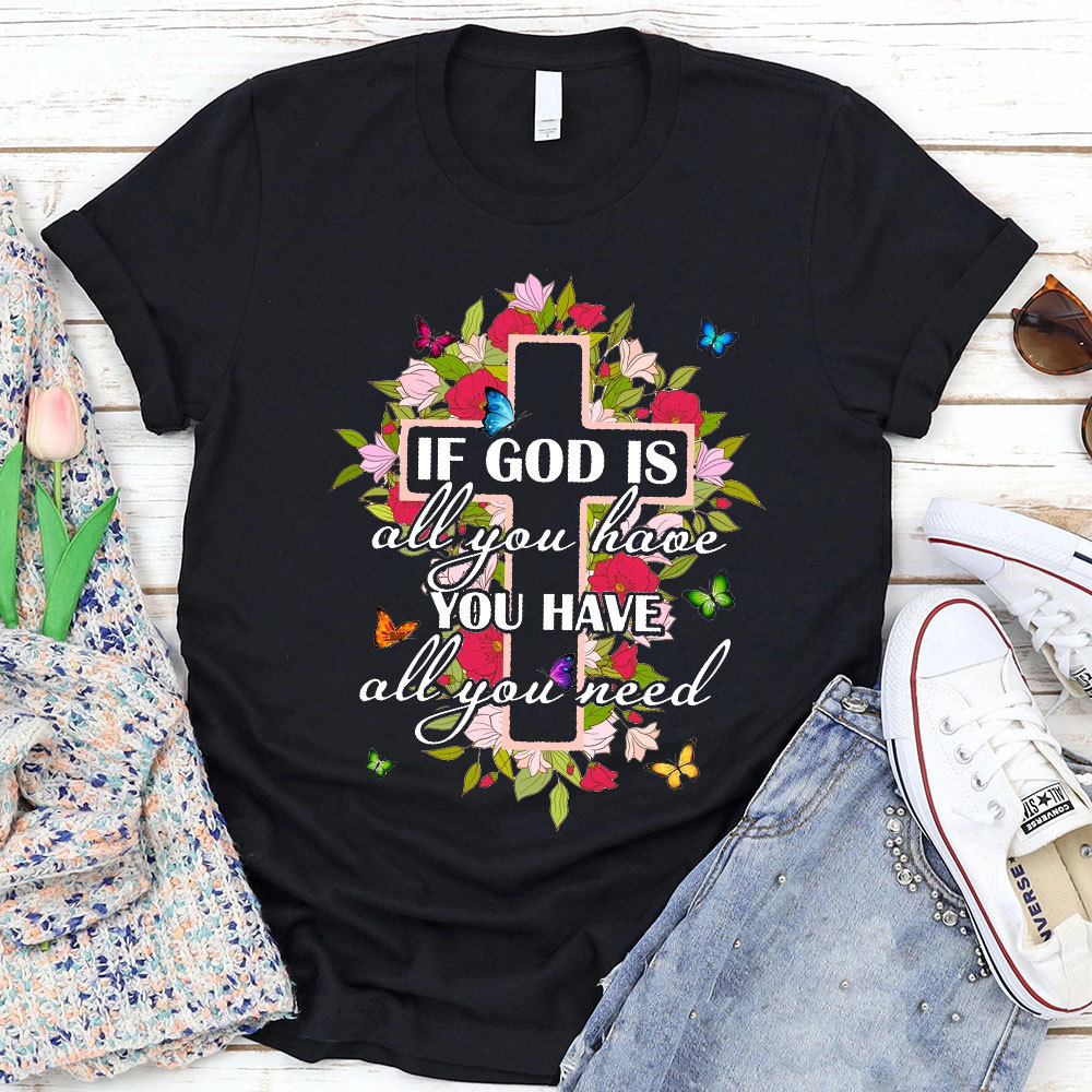If God Is All You Have You Have All You Need Flowers Cross T-Shirt