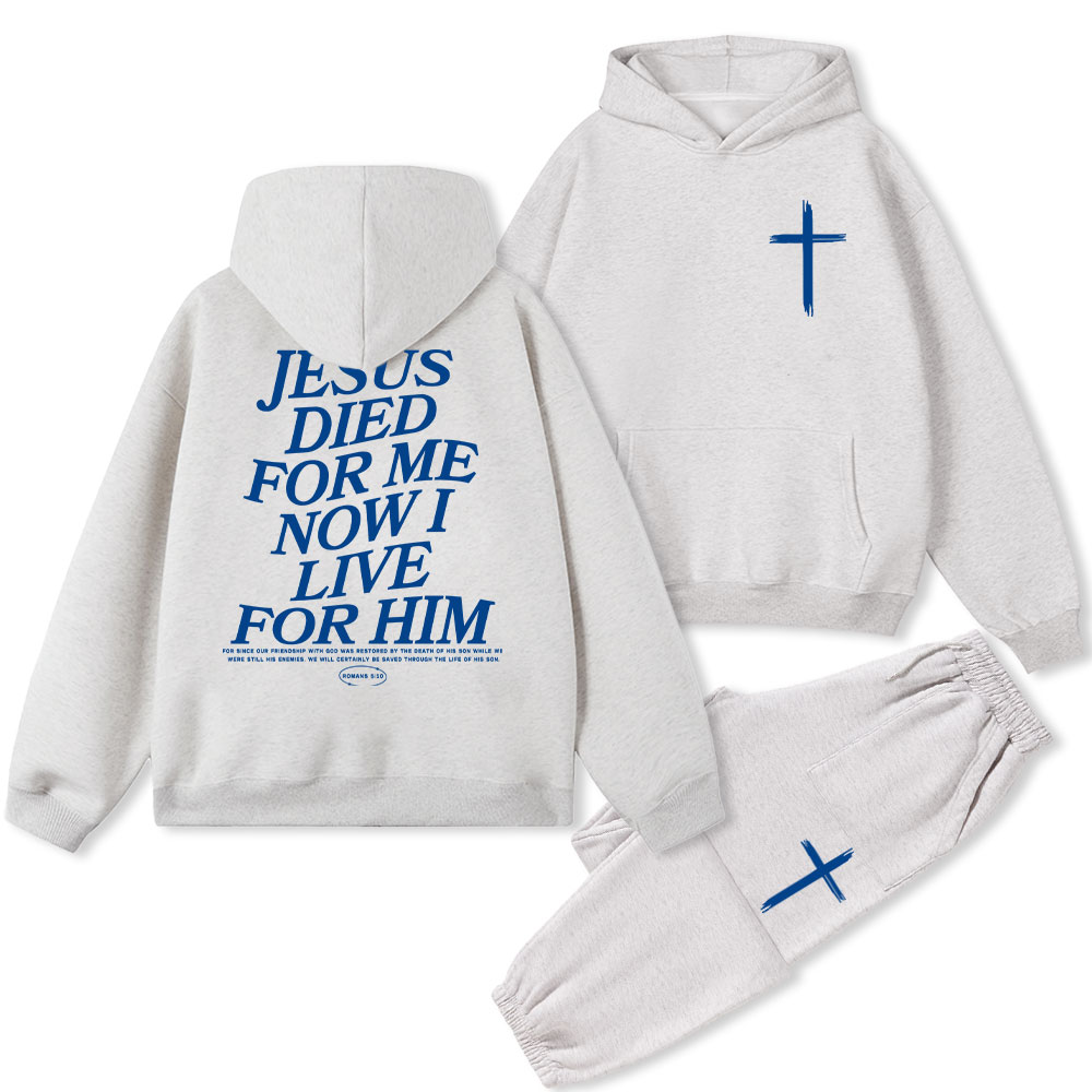 Jesus Died For Me Now I Live For Him Christian Fleece Hoodie Set