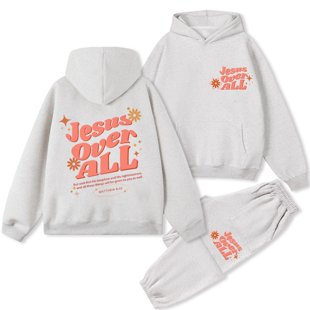 Jesus Over All Christian Fleece Hoodie Set