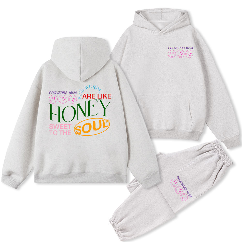Kind Words Are Like Honey Christian Washed Fleece Hoodie Set