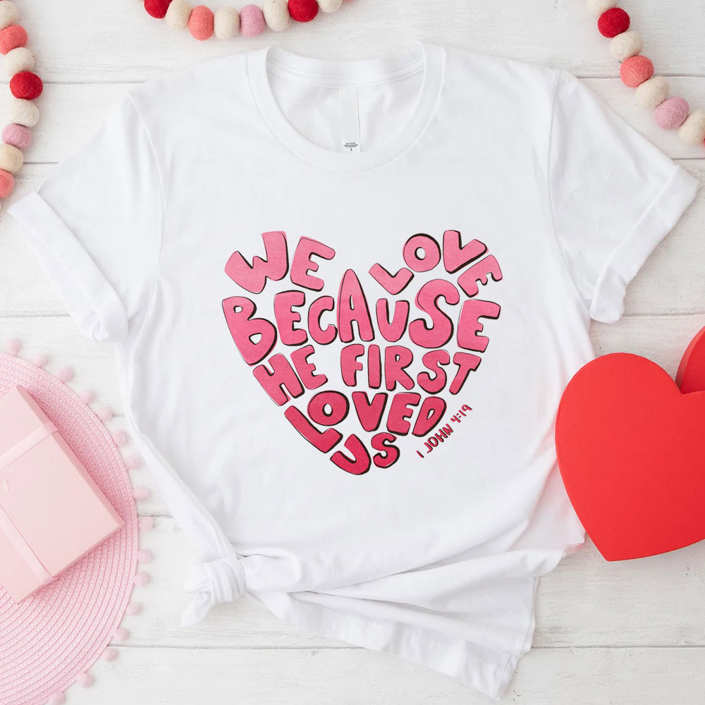 We Love Because He First Loved Us Heart Shirt